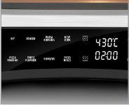 Das hitzebeständige, schwarze Stahlgehäuse mit Edelstahl-Dekor und die 3-lagig geschichtete Glastür vereinen Sicherheit und Stil. Dank der Innenraumbeleuchtung hast du den Backvorgang stets im Blick. Die Bedienung erfolgt mühelos über ein modernes Digitaldisplay mit Sensor-Touch-Steuerung.