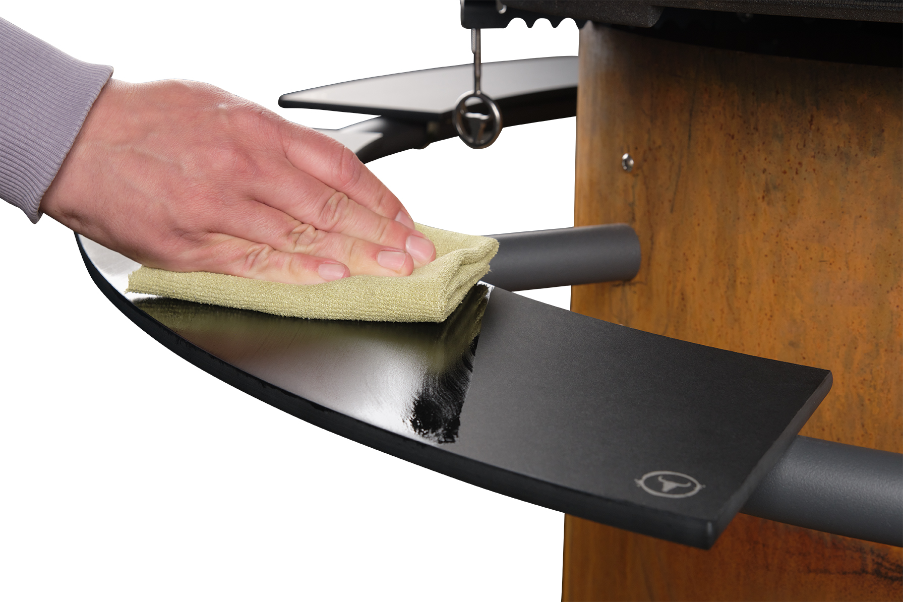 Bei Bedarf, die Oberfläche mit einem weichen Tuch trocken wischen. Dann das Holz trocknen lassen.