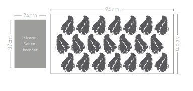 Grillfläche Garkammer: 94 x 46 cmGrillfläche Seitenkochstelle: 24 x 37 cm
