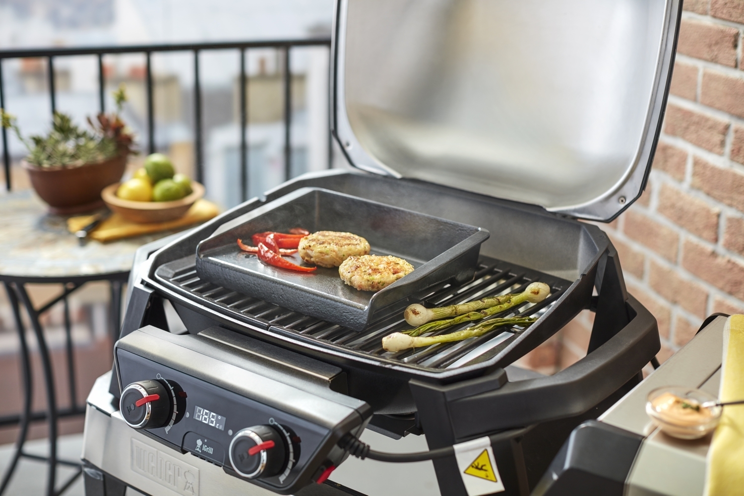 Mit der Grillplatte (nennt man auch gerne mal Plancha) aus massivem Gusseisen ist das alles kein Problem. Alles was eigentlich durch den Rost fallen würde kann drauf perfekt gegrillt werden, d.h. Spiegelei zum Burger, kein Problem.