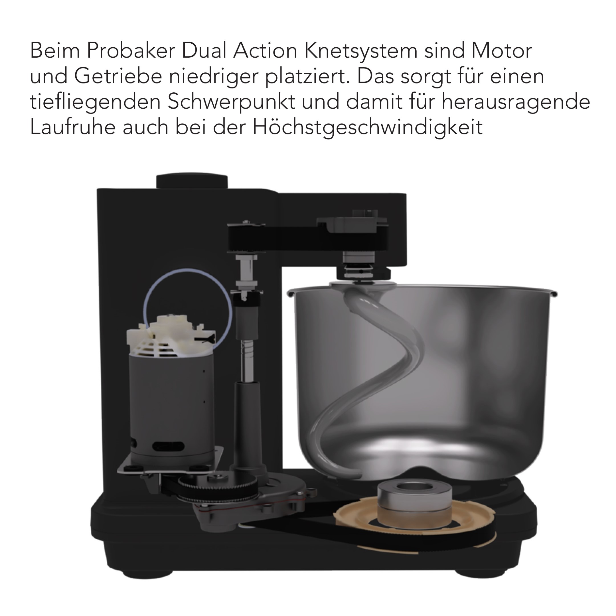 Ein entscheidender Vorteil der Probaker-Timer KM2BS-T70 ist das planetarische Rührsystem. Dabei handelt es sich um ein innovatives Rührsystem, bei dem der Rührbesen nicht nur um die eigene Achse dreht, sondern sich gleichzeitig entlang des Schüsselrandes bewegt. Dieses doppelte Drehprinzip sorgt dafür, dass jede Ecke der Schüssel erreicht und alle Zutaten gründlich vermengt werden.